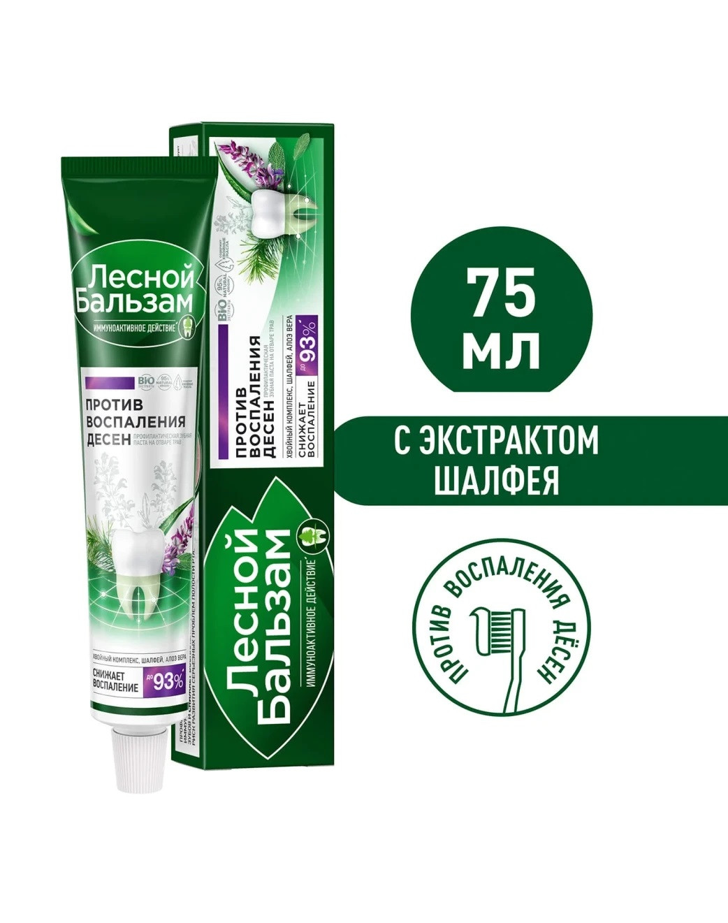 Профилактическая зубная паста Лесной бальзам на отваре трав c иммуноактивным действием помогает решить проблему воспаления десен и в 2 раза улучшает работу собственного иммунитета полости рта, снижая риск развития проблем с деснами*. Содержит хвойный к...