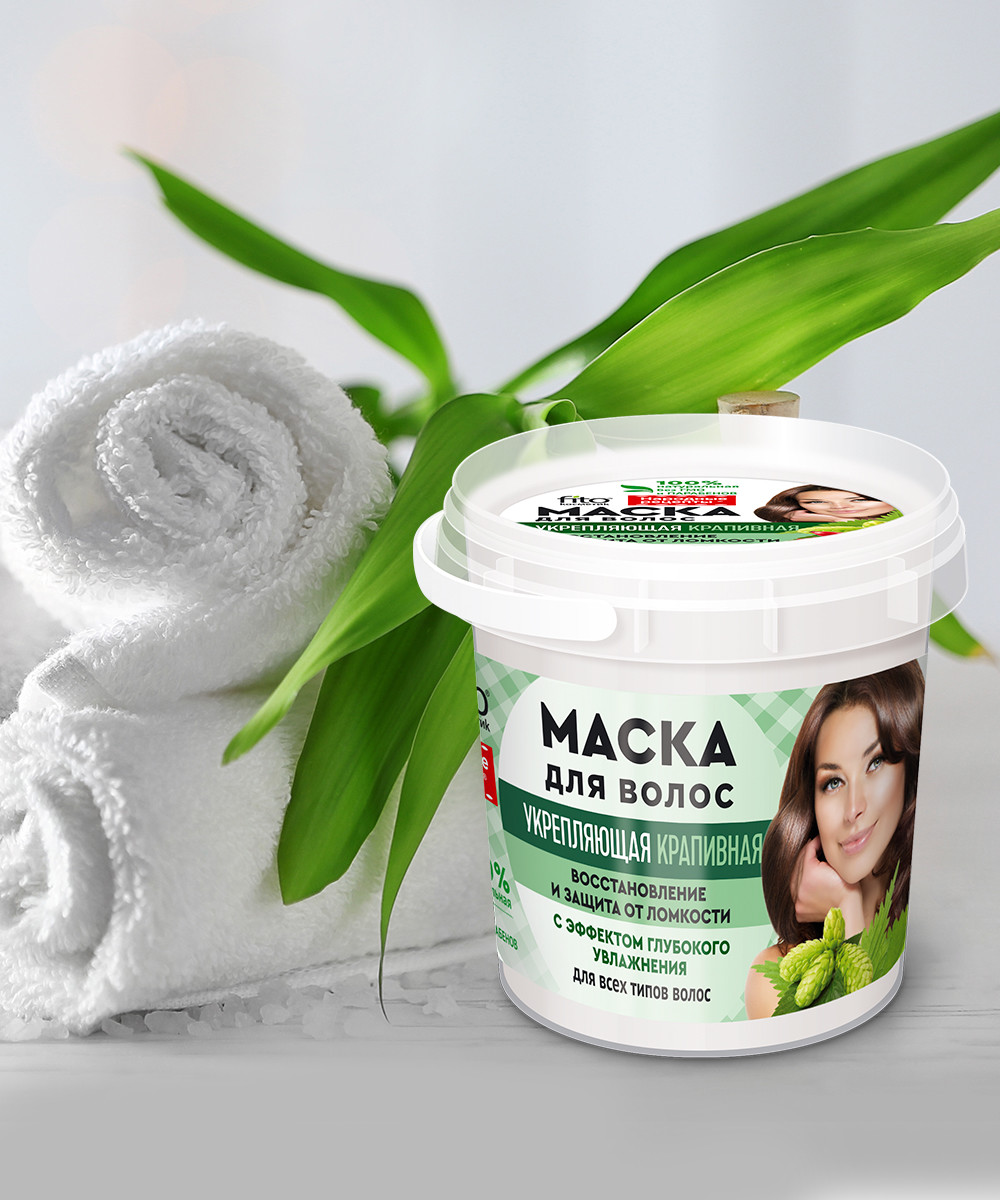 Натуральная крапивная маска эффективно укрепляет и восстанавливает волосы, делает их густыми, сильными и прочными. Входящие в состав экстракт шишек хмеля и масло шиповника глубоко питают и увлажняют, устраняют ломкость и сечение, дарят волосам мягкость...