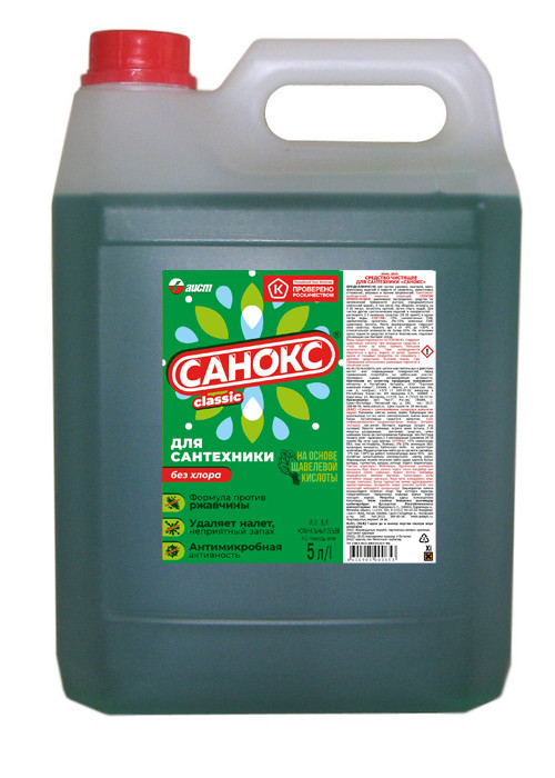 • Удалит без следа ржавчину, мыльный осадок, жир и глубоко въевшуюся грязь, застарелые солевые и известковые отложения Не требует усилий при чистке Первое в России жидкое чистящее средство на основе щавелевой кислоты. Отлично удаляет ржавчину, придает блеск и сияние поверхности, уничтожает вредные микробы. Благодаря превосходным чистящим качествам "Санокс" является лидером на российском рынке среди чистящих средств для сантехники. Уничтожает возбудителей стафилококка и кишечных инфекций. Предназначено для чистки раковин, унитазов, кафеля и другого сантехнического оборудования от ржавчины, известковых отложений, жировых и прочих загрязнений.