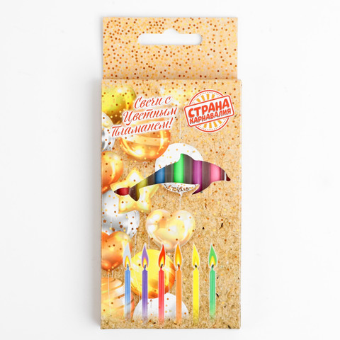 Свеча для торта "Цветное пламя" набор 6 шт, 5,5см