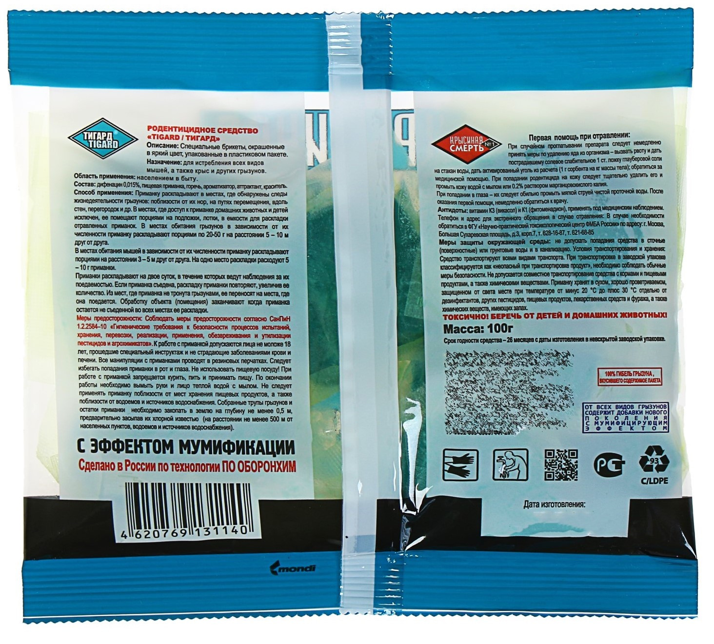 Средство Крысиная смерть № 1 раскладывают под укрытием в специальных или приспособленных для этого емкостях из картона, полиэтилена или жести пинцетом (чтобы исключить ) по пакетику для мышей, 2 — 3 пакетика для крыс в местах заселения грызунов, вблизи...