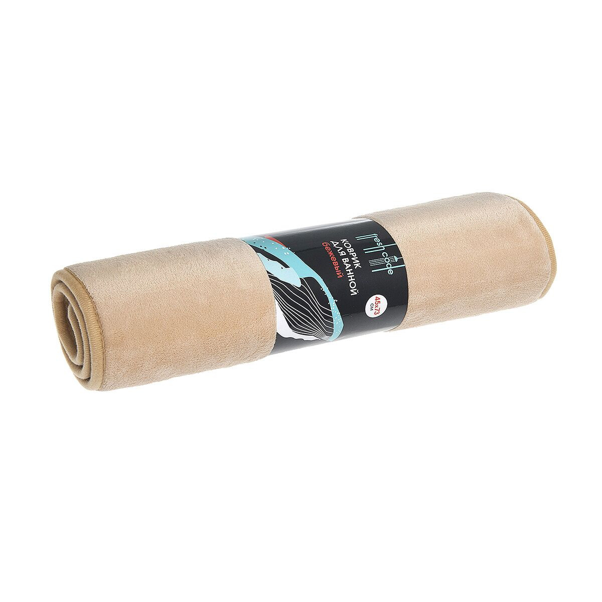 Мягкий, гладкий и приятный на ощупь ворс из микрофибры отлично впитывает влагу, быстро сохнет.\nВнутренний слой - поролон, добавляет приятную мягкость.\nОбратная сторона коврика с нанесением ПВХ , благодяря этому коврик не скользит по полу.\...