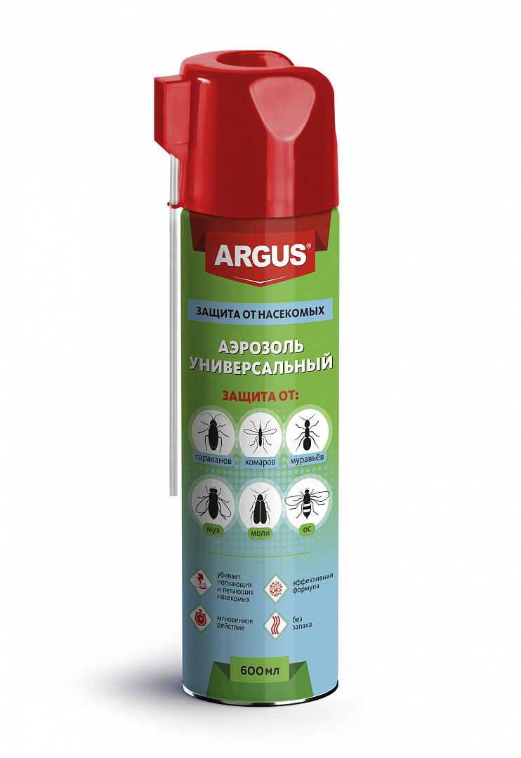 ARGUS Универсальный аэрозоль (Дихлофос №1) от всех насекомых (ТАРАКАНОВ, муравьев, МУХ, комаров, ОС, мошек, моль, кожееда, блох, КЛОПОВ) 600 мл.\nЭффективное и экономичное универсальное средство мгновенного действия для уничтожения тараканов, клопо...
