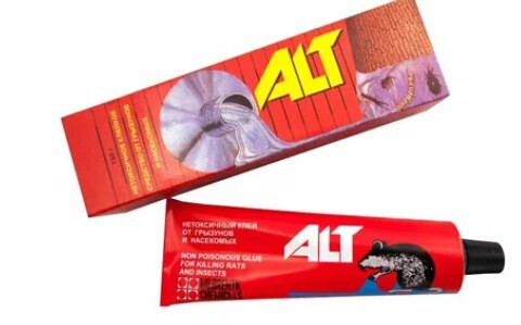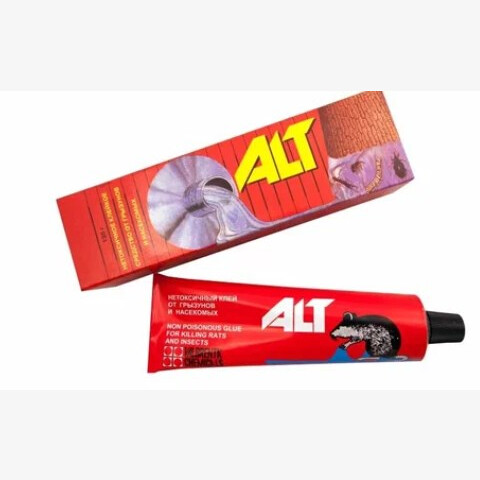 Оригинальный нетоксичный клей от грызунов и насекомых "ALT" (туба 135гр) . Клей ALT является механическим средством отлова грызунов и насекомых. Клеевая ловушка для грызунов и насекомых не содержит ядовитых веществ, поэтому удобен для использования в сельском и домашнем хозяйстве. Клей АЛТ предназначен для уничтожения грызунов путем для отлова домовых мышей, молодых крыс (весом до 100г) и полевок внутри и вокруг жилых и нежилых помещений, промышленных и сельскохозяйственных построек, на садово-огородных участках, а также там, где применение ядохимикатов нежелательно. Средство для борьбы пригодно для использования в сухих и влажных помещениях. Клей ALT можно использовать против крыс и мышей, насекомых и для защиты деревьев