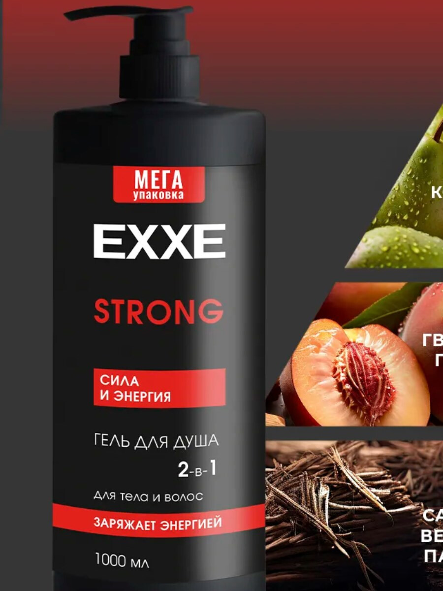 Гель для душа EXXE MEN 1000 мл, STRONG Сила и Энергия 2в1 (1*4)