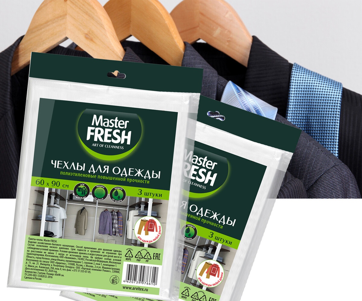 Чехлы для хранения одежды Master FRESH 60*90см повышенной прочности, 3шт 11мкм (1*50)