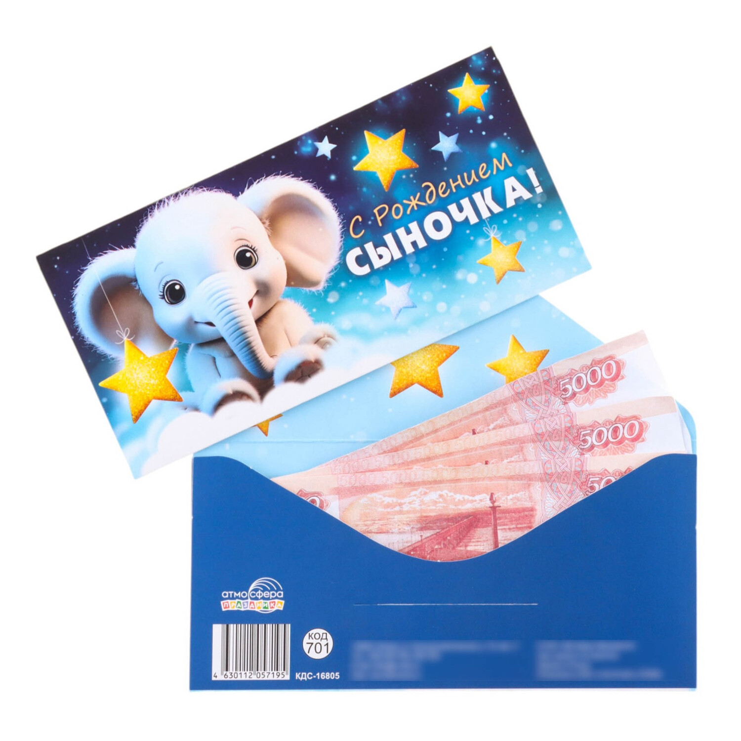 Конверт для денег "С Рождением сыночка!" голубой фон, 8 х 17 см (1*10)