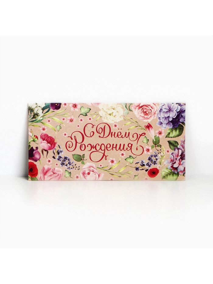 Конверт для денег «Поздравляю» цветы на крафте, 16,5*8см (1*10)