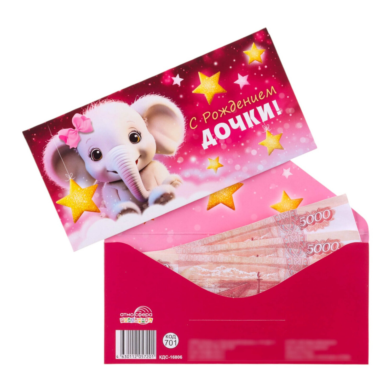 Конверт для денег "С Рождением дочки!" розовый фон, 8 х 17 см (1*10)