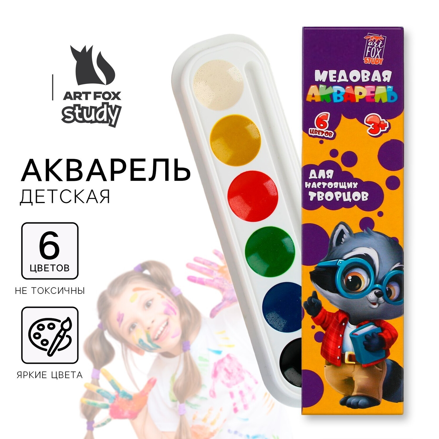 Набор акварельных красок для художественного творчества .Краски изготовлены по специальной технологии на основе минеральных наполнителей с добавлением натуральных пластификаторов . Акварельные краски ArtFox STUDY серии «Персонажи» подходят для творческих занятий в школе ,детском саду и дома . Естественные цвета Яркость палитры Чистота цвета
