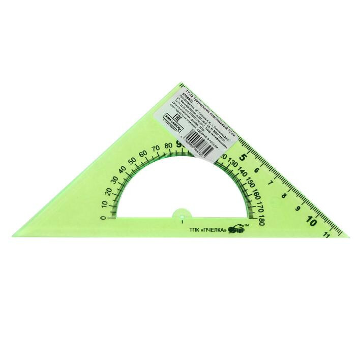 Тонированный треугольник с транспортиром предназначен для чертёжных и измерительных работ. Изготовлен из прочного прозрачного пластика толщиной 2 мм. Длина шкалы - 12 см, угол - 45°, транспортир - 180°. обладает четкой разметкой, что делает его удобным в использовании. Упакован в блистер с европодвесом.