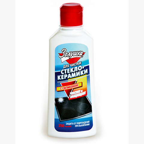 Средство с силиконом для чистки и защиты плит из стеклокерамики. Уникальная формула средства сочетает в себе силиконовые масла для защиты поверхности при выкипании пищи и мягкий природный чистящий минерал для бережной очистки плиты от загрязнений. Способ применения: удалите грубые загрязнения с плиты. Нанесите небольшое количество средства на поверхность плиты и почистите с помощью губки. Протрите поверхность влажной салфеткой и отполируйте сухой мягкой тканью.
