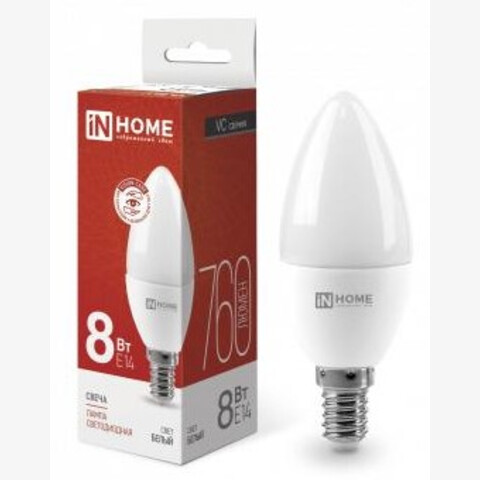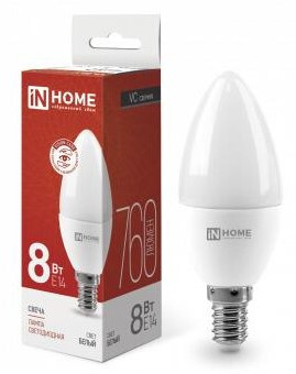 Лампа светодиодная LED-СВЕЧА-VC 8Вт 160-230В IN HOME Е14 4000К 720Лм ASD (белый свет)(1*100)