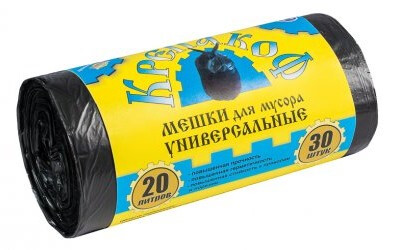 Мешки для мусора КРЕПАКОФФ с ручками 20л. 30шт. (в рулоне 8мкм, 42*47см) черные (1*50)