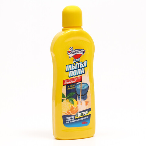 ЗОЛУШКА, Средство для полов Цитрус 500 мл, 1 шт. Золушка «Для мытья пола» быстро смывает грязь и жир, не оставляя разводов. Не требует смывания. Предназначено для мытья и дезодорирования пола (плитка, кафель, линолеум и др.) и различных поверхностей – кухонных шкафов, столов, поверхности бытовой техники, а также сантехники. Способ применения: Для мытья пола и общей уборки - разведите 60 мл (2 колпачка) в 5 л воды; при сильных загрязнениях- нанесите средство неразбавленным на загрязненное место, протрите губкой или жесткой тряпкой.