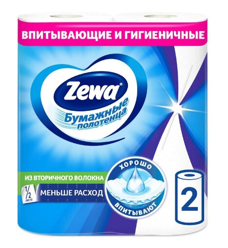 Полотенце бумажное ZEWA 2-ух слойные 2шт (1*12)