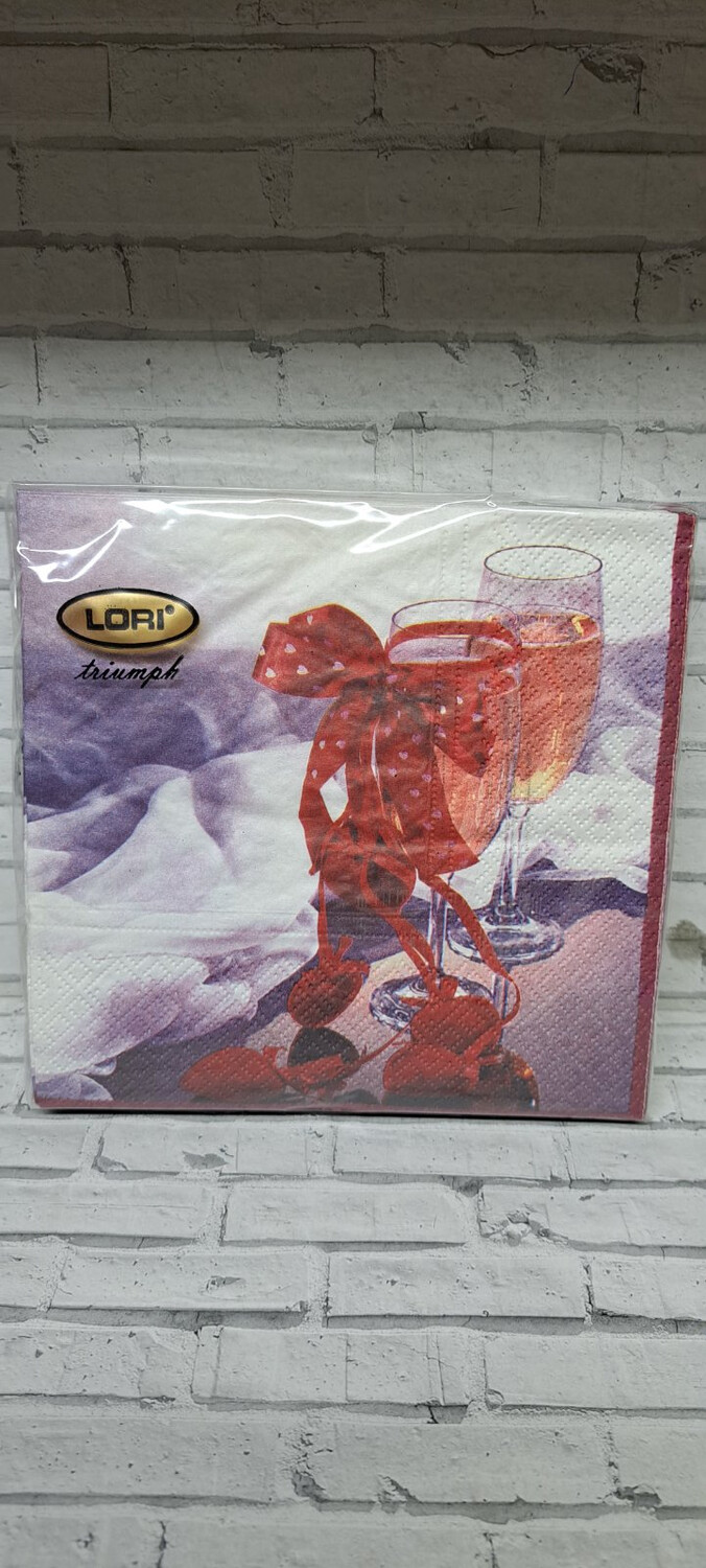 Салфетки "Лори" трехслойные 33*33 20 шт., Два фужера с красной лентой (1*16)