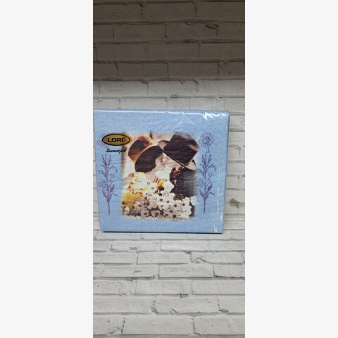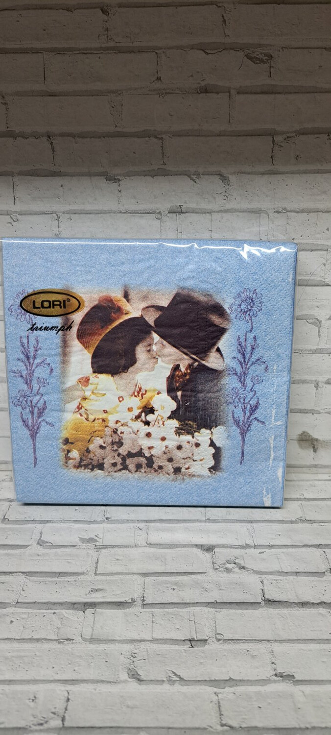 Салфетки "Лори" трехслойные 33*33 20 шт., Поцелуй влюбленных на голубом фоне (1*16)