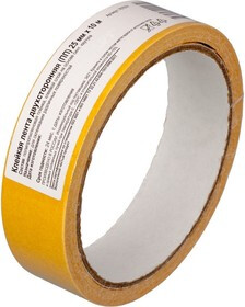 Клейкая лента двусторонняя монтажная на полипропиленовой основе. Клеевой слой на основе синтетического каучука. Ширина - 25 мм, длина - 10 м. Толщина ленты - 80 мкм.