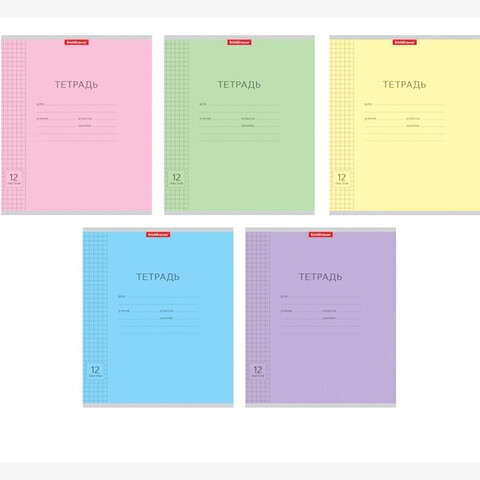 Тетрадь школьная ученическая формата А5+ (170 х 203 мм). Обложка из высококачественного мелованного картона плотностью 180 г/м2. В блоке 12 листов в клетку с полями. Бумага офсетная плотностью 60 г/м2. Цвет линовки - синий. Скругленные уголки обложки и блока. Тип скрепления - скоба. Тетради одного цвета упакованы в термоусадочную пленку по 10 штук. Товар поставляется в нескольких вариантах цвета без возможности выбора.