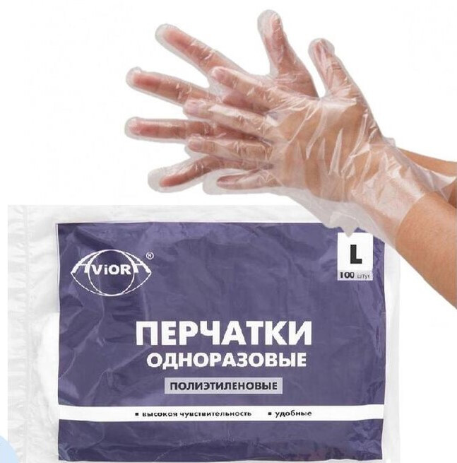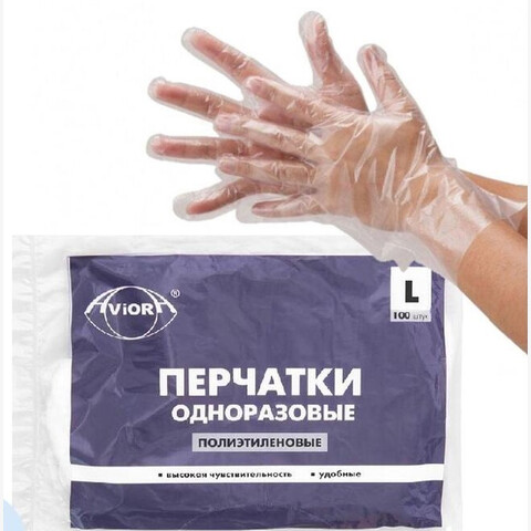 Перчатки полиэтиленовые одноразовые AVIORA L- р-р, 100шт (1*100)
