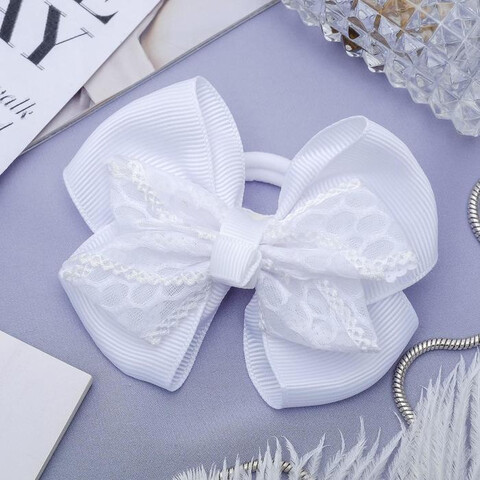 Резинка с бантом для волос «Школьница», кружева, 9 см, белая (1*6)