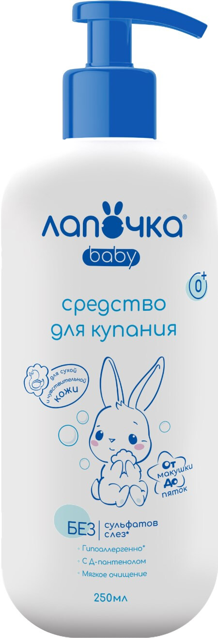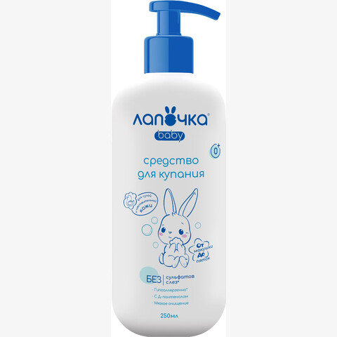 Детское средство для купания Лапочка предназначено для купания детей с рождения. Не раздражает глаза, не содержит мыла. Не содержит сульфатов (SLS,SLES), хлоридов, парабенов и красителей. Натуральный экстракт календулы и ромашки снимает воспаление и обладает природным антисептическим действием. Д-пантенол предохраняет чувствительную кожу ребенка от пересушивания и обеспечивает заживление раздражений и покраснений. Гипоаллергенная отдушка, входящая в состав средства, подарит прекрасное настроение маме и малышу. Удобная упаковка позволяет открывать и закрывать флакон одной рукой. Продукт одобрен врачами-дерматологами и врачами-офтальмологами НПЦ «КОСМОПРОДТЕСТ» по результатам тестирования и клинической апробации.